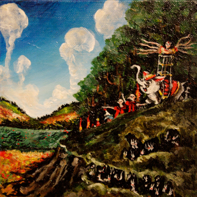 Elena Rapa, Tino e Gino l'elefantino, 2010, mixed media on canvas, 20x20 cm
