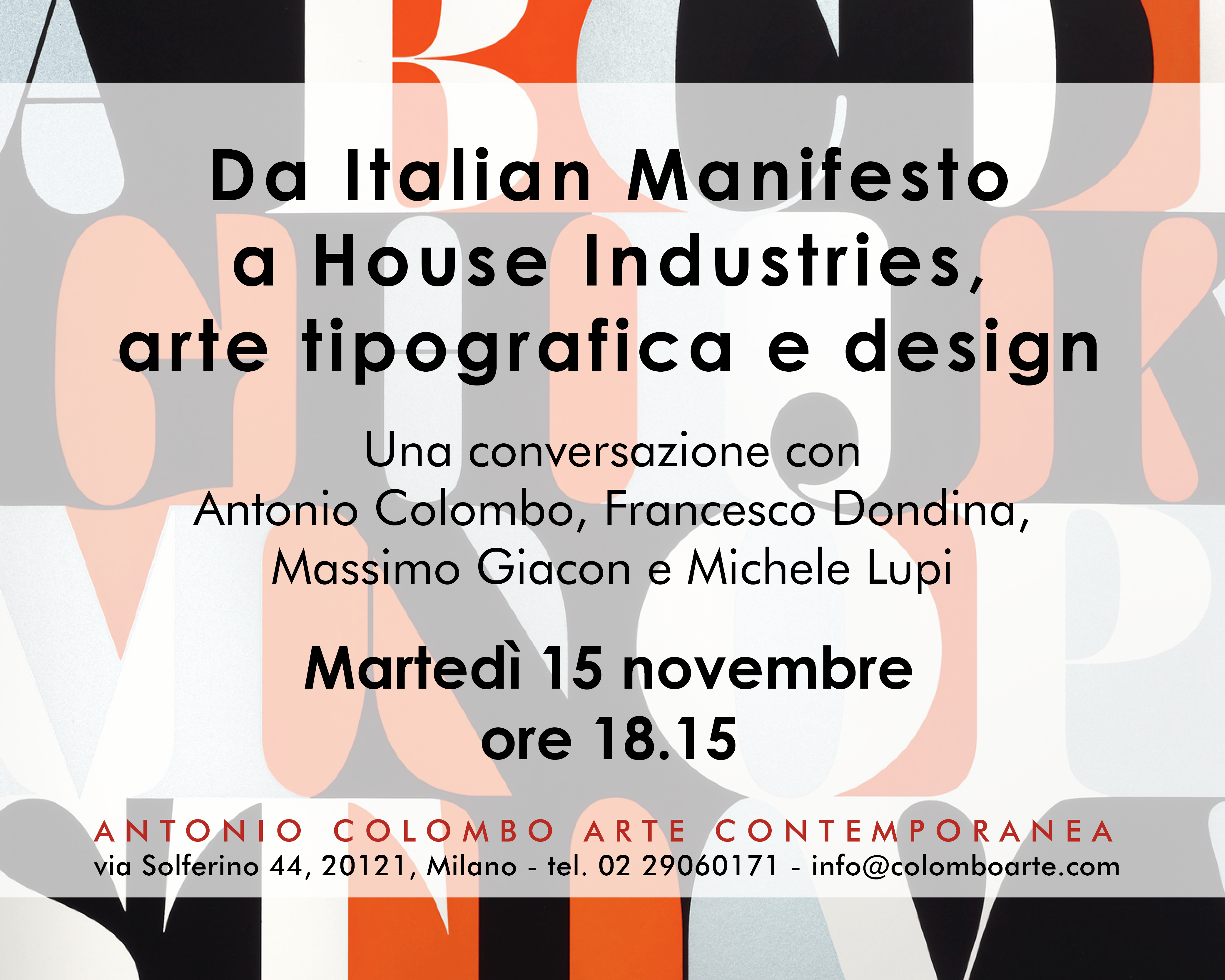 Talk "Da Italian Manifesto a House Industries, arte tipografica e design". Una conversazione con A. Colombo, F. Dondina, M. Giacon e M. Lupi, martedì 15 novembre